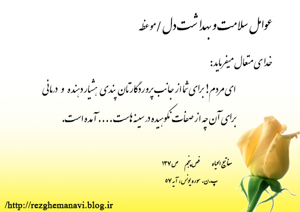 در قرآن و روایات اموری زنده کننده قلب و مایه بهداشت آن شناسانده شده اند، مانند: